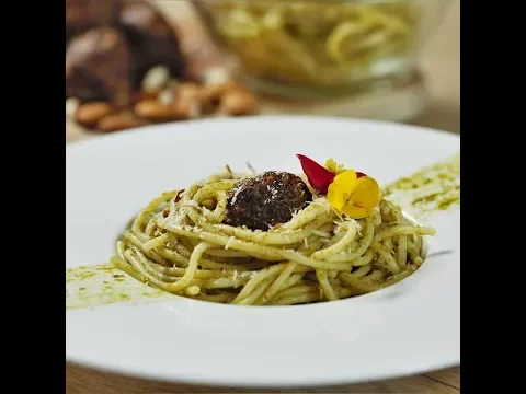 Cum să prepari chifteluțe de porc la cuptor, cu spaghete și sos pesto