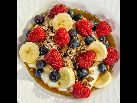 - Poți servi cu iaurt grecesc, coacăze, zmeură și banană. Stropește cu sirop de arțar.
