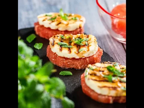 Cum să prepari halloumi la grătar pe pat de grepfrut