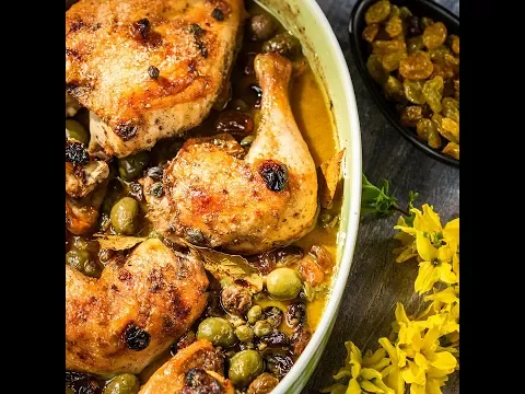 Iată o mâncare de pui care stă sub semnul măslinelor. Aroma specifică lor se impune prin intermediul uleiului de măsline (folosește unul de calitate) și al măslinele verzi pe care le vei include în marinadă. Fă totul și mai interesant cu stafide aurii și cu o glazură de zahăr brun. Poftă bună!