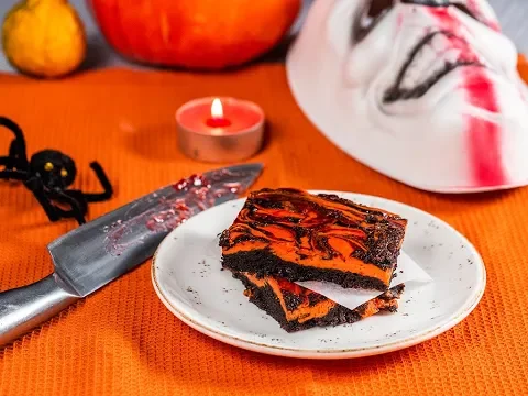 Am pregătit acest brownie cu gândul la mult așteptata petrecere de Halloween! Blatul de cacao este aromat cu vanilie și acoperit de o cremă de brânză delicioasă. Am ales să respectăm tematica de Halloween și să colorăm cu culoarea tradițională a sărbătorii. Pe lângă asta, am creat și un model drăguț pentru prăjitură. Încearcă și tu, și vezi ce iese!