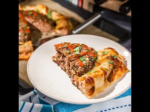 După ce-o să faci prima dată această plăcintă cu carne, vei vrea să o faci din nou și din nou. Centrul are carne tocată de vită, iar pe marginile crocante vei descoperi gustul de cârnat proaspăt și mozzarella topită.