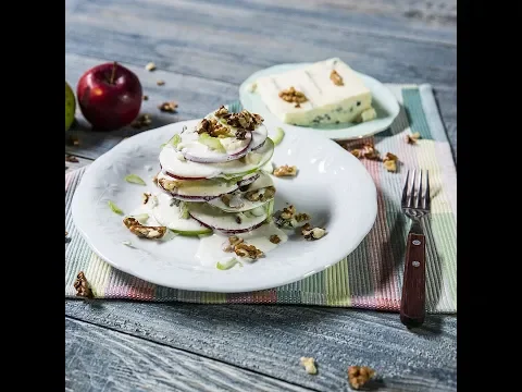 Cum să prepari salată cu mere, nuci și dressing de lapte bătut