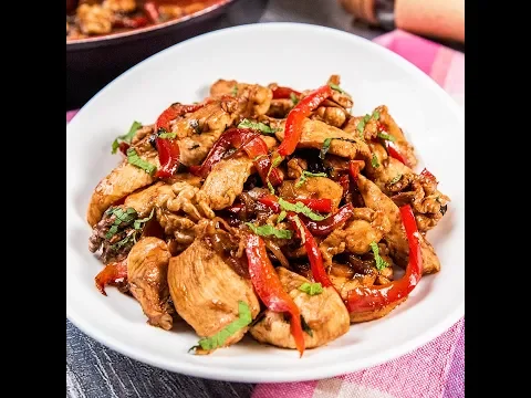 - Scoate ardeiul din tigaie și călește ceapa timp până capătă o culoare aurie. Adaugă pieptul de pui și ține-l pe foc timp de 12 minute.