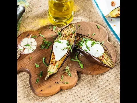 Spuneați că vinetele sunt ceva banal? Noi spunem că nu, mai ales când sunt gătite bine. Le-am copt bine pe ale noastre, dar nu înainte de a le aroma cu un mujdei de usturoi care sigur ar alunga toți vampirii din ogradă. Apoi, le-am servit cu ceva simplu, inspirat din bucătăriile orientale și anume puțin iaurt și pătrunjel tocat.